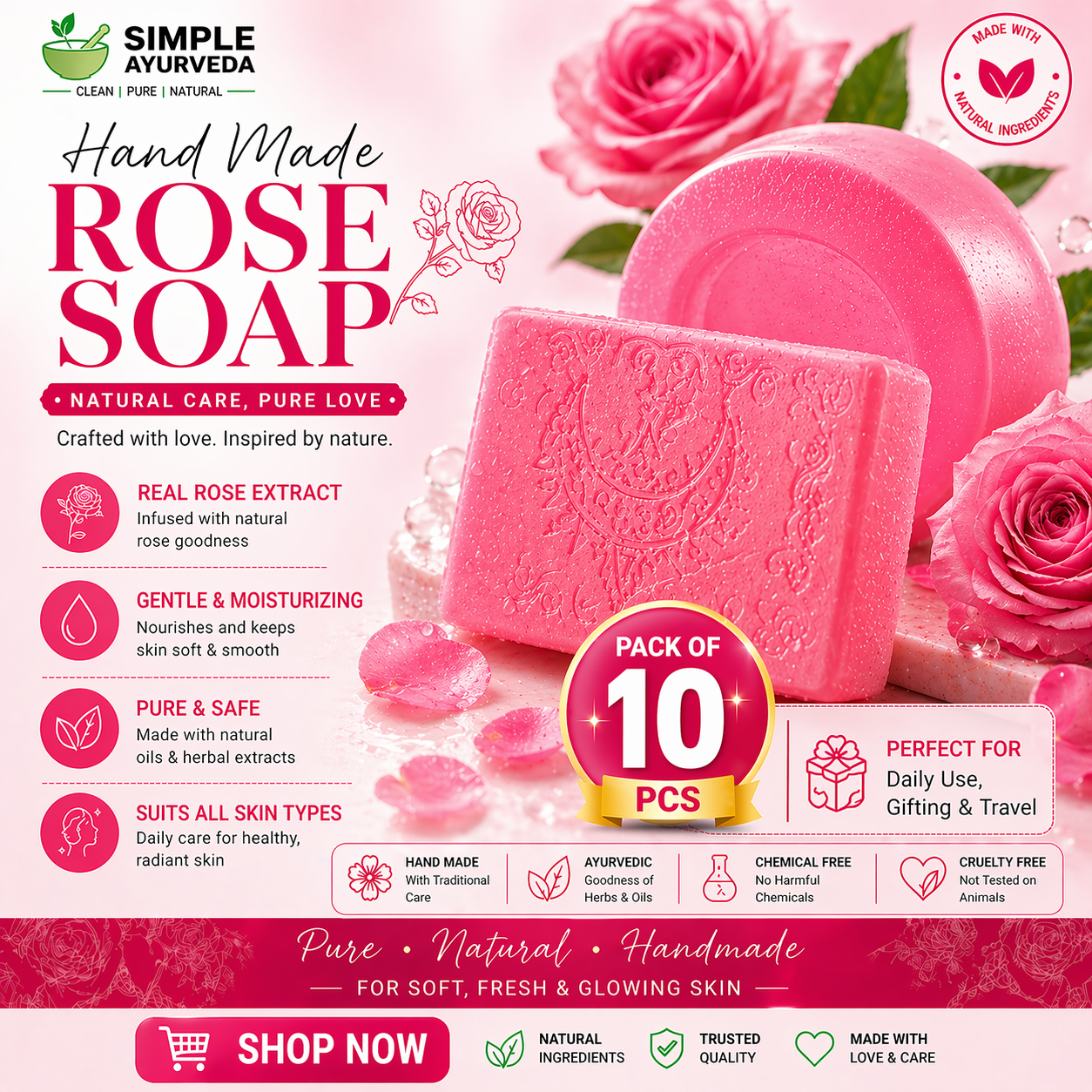 Hand Made Glycerin Transprent Rose Soap Pack of 10pcs